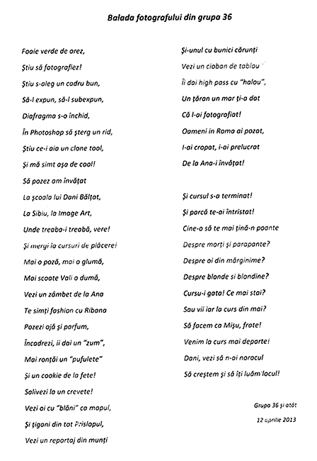 A 36-a promoție a Școlii de Fotografie Image Art din Sibiu, februarie - aprilie 2013